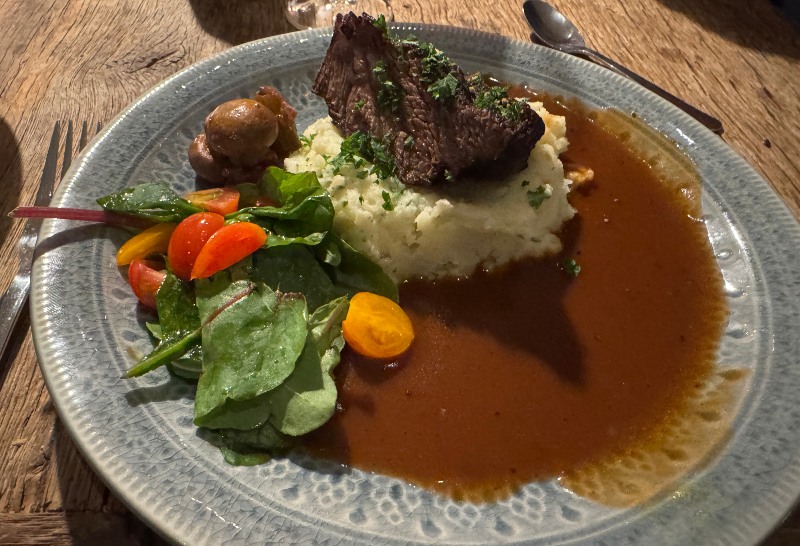 Huset ligger vackert alldeles nere vid vattnet men just i dag var det inte läge att sitta ute i snålblåsten. I vilket fall höll jag ett två timmar långt föredrag medan oxkinden låg på långkok (den blev suverän) och väntade på att bli klar.