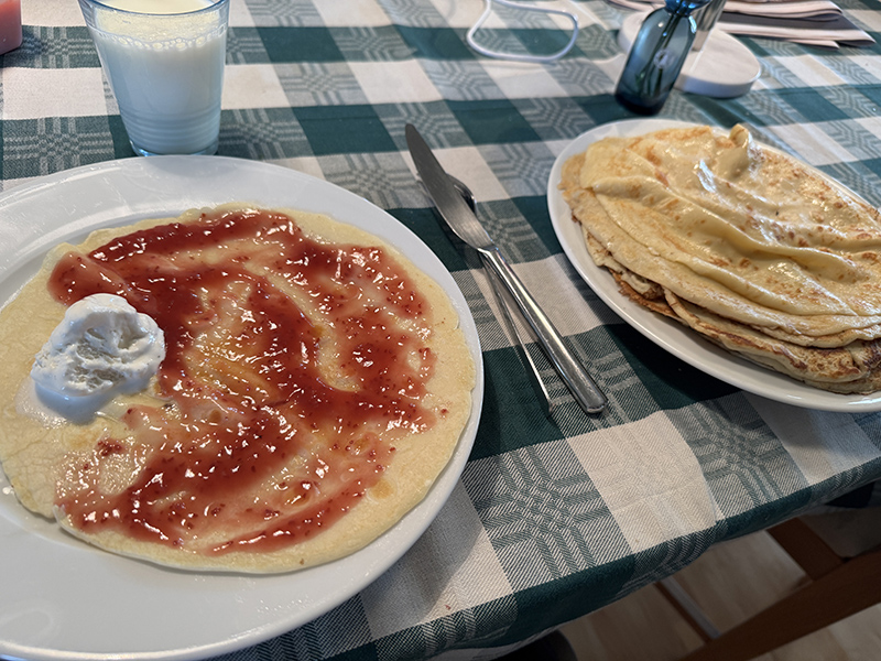 Det blev pannkakor till lunch för mig. Med glass och sylt! Inte dumt.