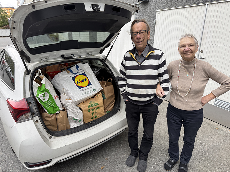 Huset var byggt så att källaren låg en trappa upp. Lite spännande. Och där fanns det många kassar att kånka ut. Till slut var hela bilen nästan full.