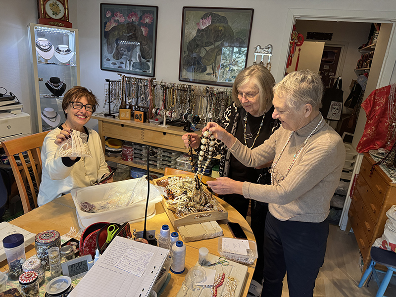 Innan jag gav mig av hemåt fick jag chansen att träffa några av de pärldamer som Kiki hade bjudit hem för den månatliga träffen då de trär pärlor och fixar allt möjligt vackert. Åtta blev de till slut innan jag tackade för mig.