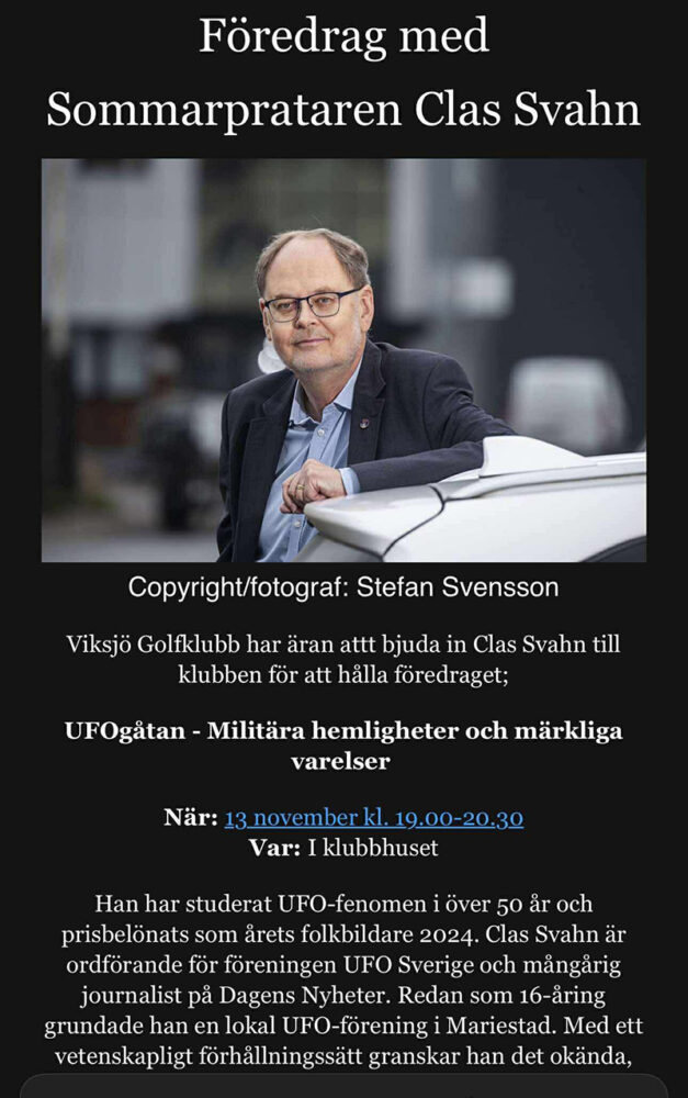 Jag kommer att prata om militära hemligheter som handlar om ufo men också lyfta fram en del knepiga observationer av varelser. Det ska bli roligt att se hur många som kommer. Gratis för medlemmar är det.