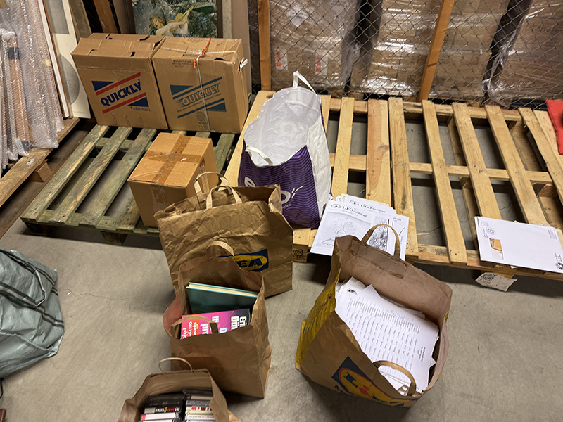 Mitt mål var att öppna alla lådorna från nedlagda UFO-Sjuhärad och sortera materialet i dem. Och det hann jag precis på två timmar. Det blev ett par kassar med böcker som ska kollas av mot samlingarna och en kasse som kommer att säljas. En kasse med tidskrifter och en stor kasse med rent föreningsmaterial; mötesprotokoll och medlemslistor med mera. Och en stor kasse med VHS- och kassettband och så en mindre. hög med uforapporter som föreningen fått in.
