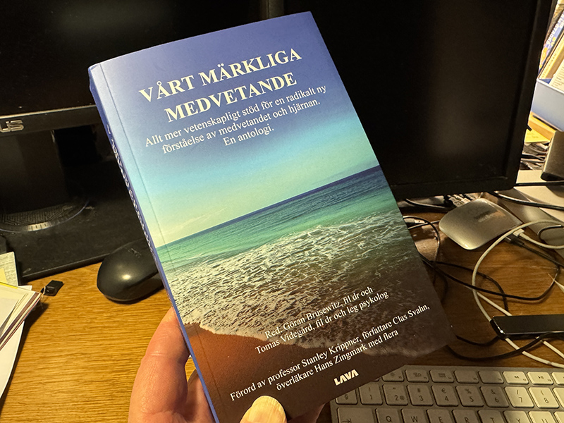 I den egna brevlådan fanns äntligen den bok som Göran Brusewitz jobbat så hårt för att få klar. Detta tillsammans med Tomas Videgård. Båda filosofi doktorer. Jag har bara bidragit med ett av flera förord men innehållet är riktigt intressant för temat är som titeln anger ”Vårt märkliga medvetande”. På bokens drygt 500 sidor diskuterar en lång rad kunniga forskare och personer med intresse för ämnet olika infallsvinklar på vad vårt medvetande egentligen är, vad det kan göra, nära döden-upplevelser och mycket annat.