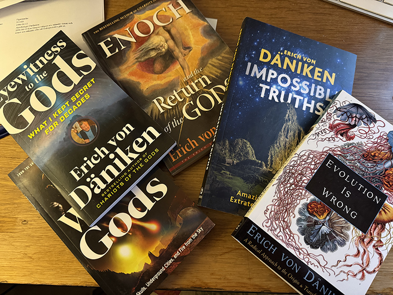 I samma brevlåda låg ett paket med ett gäng böcker skrivna av Erich von Däniken. Hans bortgång gjorde att jag kände att jag borde skaffa med mer av det han skrivit under senare år. Mycket spekulativt givetvis men jag är intresserad av EvD:s tankevärld.
