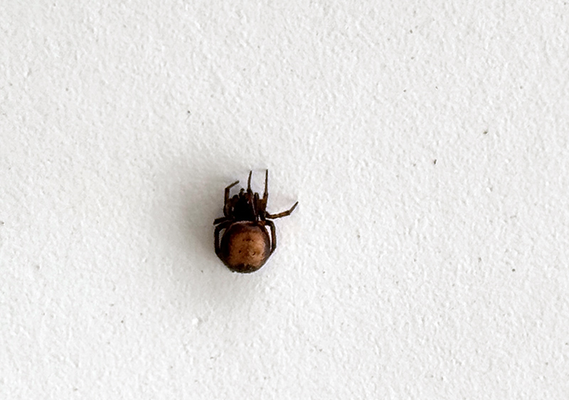 Hemma stoppade jag in startkablarna (som inte kom till något större nytta) i garaget och såg att vi hade en liten gäst på insidan av dörren. Visste inte riktigt vad det var för kryp men Googles bildsök svarade ”fettspindel”. Ofarlig för människor är den visst också! Skönt.
