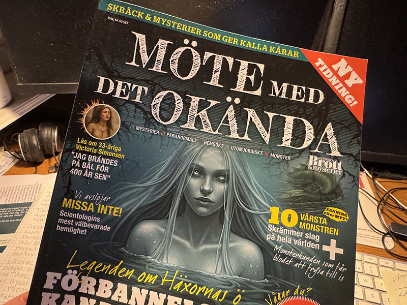 Fick också ”Möte med det okända” som görs av Historiska brott & mysterier på posten och den är väl ute i butikerna nu antar jag. Jag har i alla fall 5–6 artiklar med i detta nummer. Det är en sådan där specialtidning som är extra tjock och som alltid kallas för ”ny” av någon anledning.