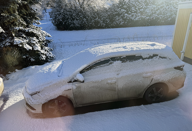 Förresten är det fortfarande vinter här och det kom en del snö i natt så det var till att skrapa bilen när jag skulle köra och hämta Ylva. Kallt.
