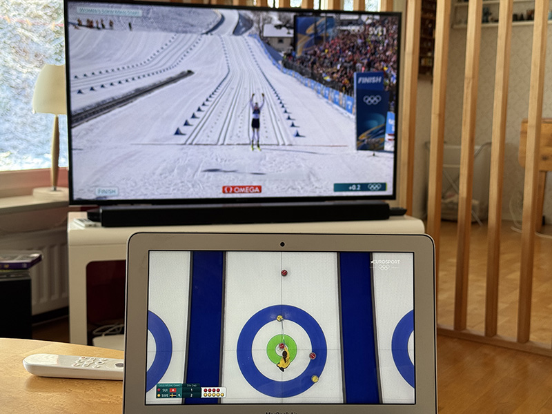 Pojkarna sov ju över här i natt så vi lagade lunch tillsammans där Niklas stod för den smarriga pastasåsen. Sedan åt vi framför femmilen där Ebba Andersson krossade allt motstånd på ett imponerande vis och därefter kunde vi också se lag Hasselborg ta guld i damernas curling. Så snyggt det också. Fast egentligen följde vi båda parallellt tills Ebba var i mål, då blev det fokus på curlingen.