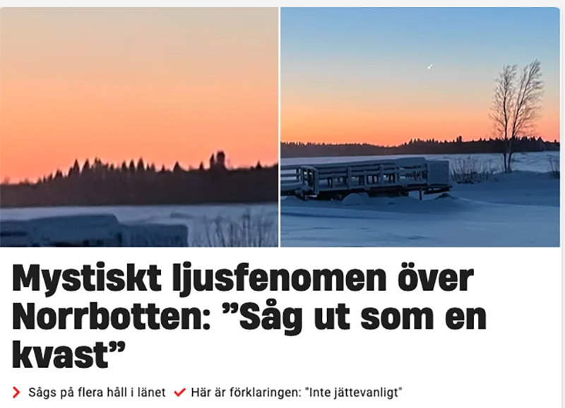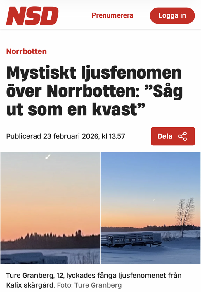 På vägen hem blev jag intervjuad av Ölandsbladet inför mitt föredrag där på onsdag och av Norran i Skellefteå om samma bolid som VK ville prata med mig om i går. Innan dagen var slut hade jag pratat även med NSD om boliden som verkar ha varit en ljusstark historia sedd i hela nordligaste Sverige. Ni kan se en skärmdump längst ned i bloggen och en här ovan där jag får en rad på flaket som den som förklarar vad som hänt.