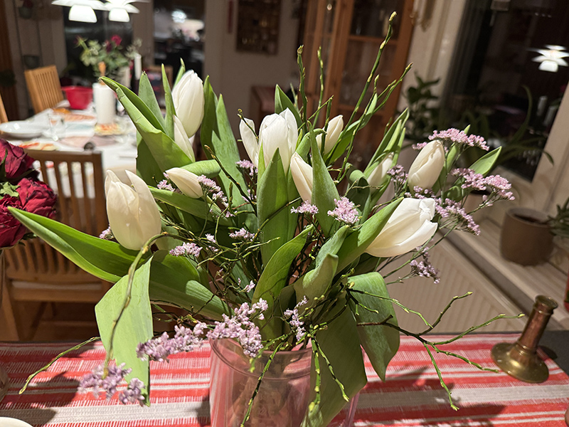 Eftersom min söta Anneli är lite krasslig just nu så tänker jag på henne med en tulpanbukett som jag fick efter mitt föredrag i Årsta i går. Puss, sötnos!
