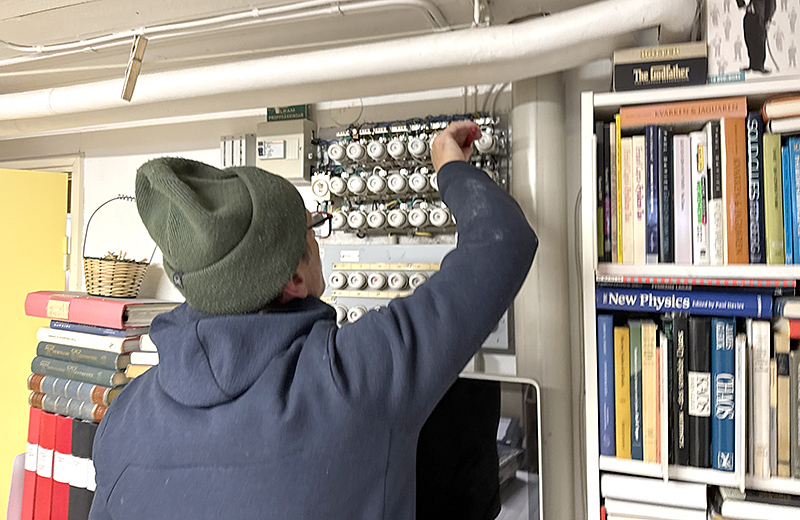 Besök nummer två var också bra för klockan 15 knackade elektrikern på för att fixa vad vi trodde var en trasig kontakt. Den kontakt som hade lurat oss att tro att hela frysboxen var paj. Men nu var det faktiskt inte själva kontakten utan efter 20 minuters letande och mätande kom Jerry fram till att det var en skruv i taklampan som satt löst!