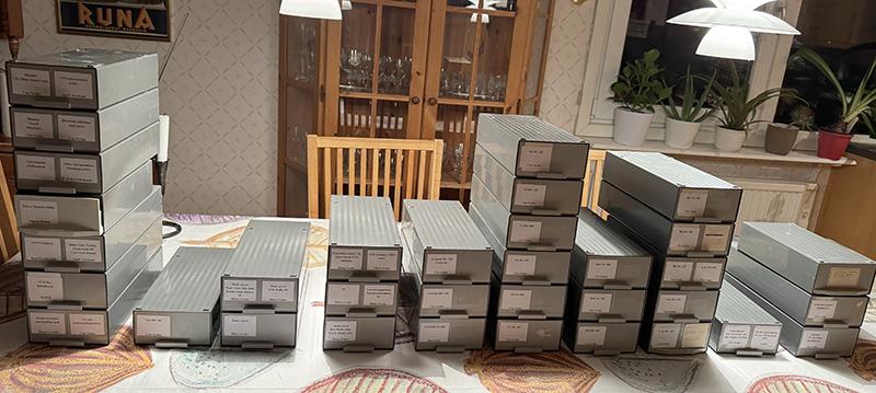 Har också jobbat på med att märka upp ett stort antal diamagasin som jag kommer att köra till AFU i nästa vecka. Dels är det mina egna diabilder med ufoanknytning och dels bilder från olik håll som jag räddat genom åren. Till slut kommer det att bli en försvarlig samling. Och då märkta ordentligt så att det går att veta vad som döljs i lådorna.