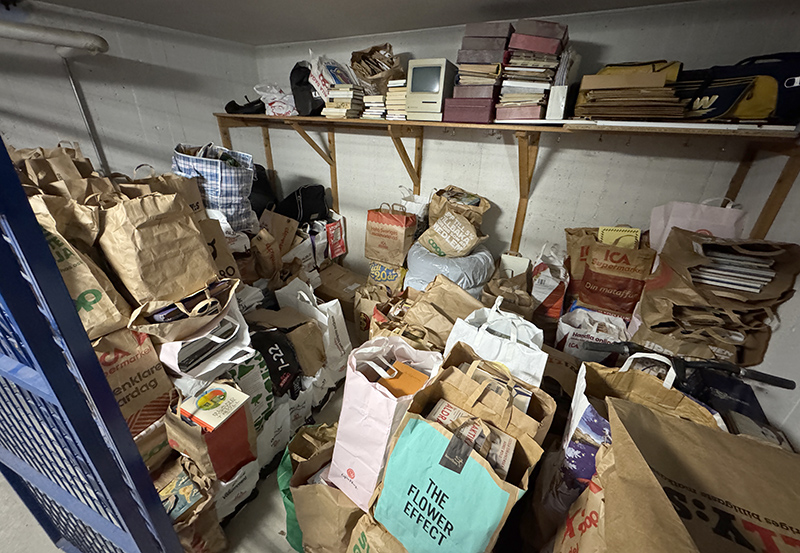 På förmiddagen fortsatte jag att klistra in artiklar och lyckades tömma en hög – nästan. Ännu återstår en del norska artiklar som jag får ta i början på nästa vecka. Efter korvlunch hemma körde jag in till Tomtebogatan för att plocka upp fem kassar med böcker som en trevlig dam och hennes man ville skänka till AFU.