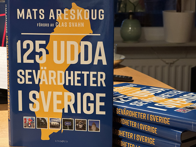 I dag fick jag en liten låda med min tidigare arbetskamrat (numera enbart kamrat) Mats Areskougs välundersökta och riktigt intressanta – för att inte säga lärorika – bok ”125 udda sevärdheter i Sverige” där jag fått nöjet att skriva ett litet förord. mats är en vandrande kunskapsbank när det gäller udda platser som är värda att besöka och att lära sig mer om.