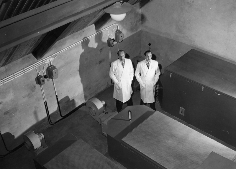 Den här ovan är bara en av dem och visar de båda bröderna i övre maskinhallen på pollenfabriken i Vegeholm 1954.