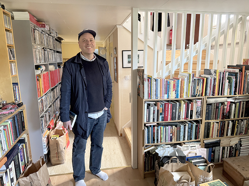 Nå, jag hade i alla fall ett trevligt besök av Greger Bergvall från kungliga Biblioteket som kom för att hämta ytterligare en kasse med böcker från Ebbe Schöns samling. Böcker som signerats till Ebbe av ett stort antal olika författare. Jag skulle givetvis ha skickat med Greger den här kassen när han var här senast men hade missat den.