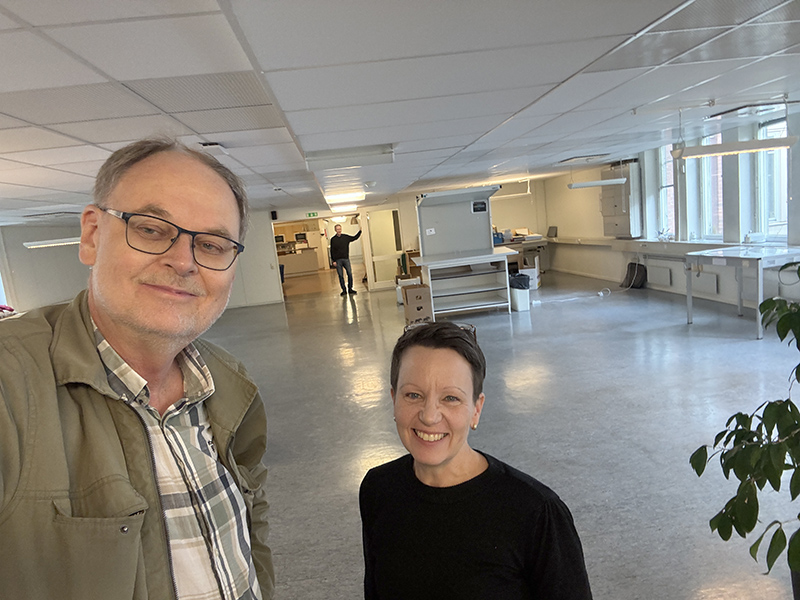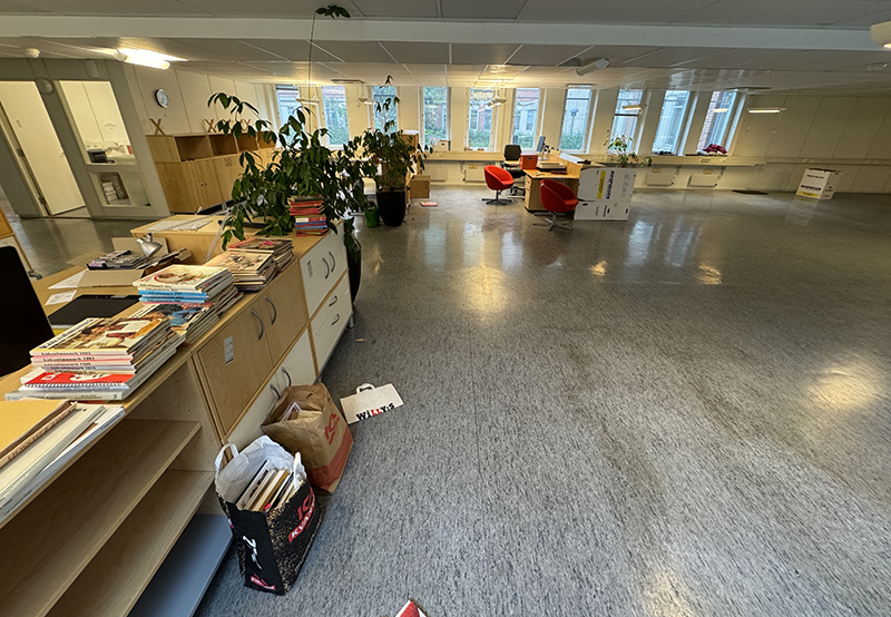 Därifrån körde jag till Semics gamla lokaler som nu håller på att tömmas helt. Therese Nygren väntade på mig. Ni kan se oss på bilden överst. Det som nu finns kvar är mest möbler men också en del böcker. Och trots att jag varit här ett par gånger och fyllt bilen så fanns det mer att hitta.