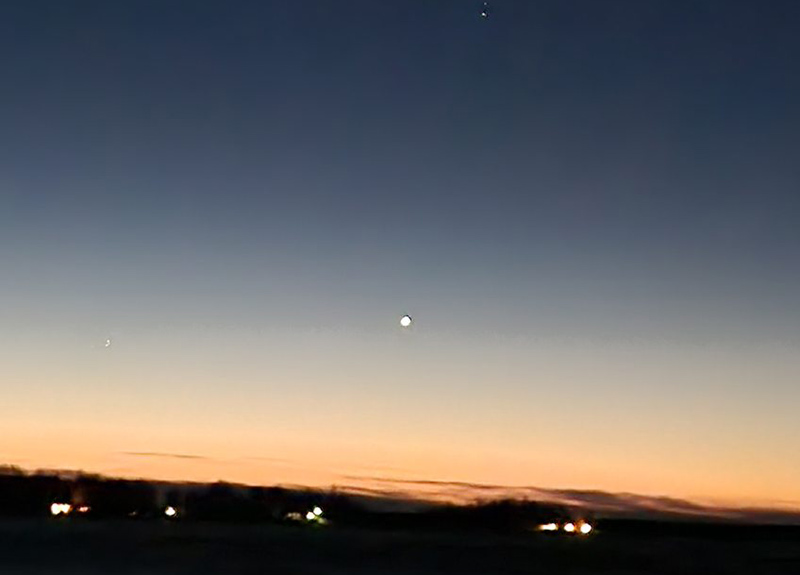 Huvudvittnet, som också tog bilden ovan, säger nu att han helt avskrivit tanken på att det skulle ha varit drönare. Båda vittnena konstaterar också när jag pratar med dem att de under måndagsmorgonen sett samma sak igen. Vilket inte tyder på drönare eller meteorer.