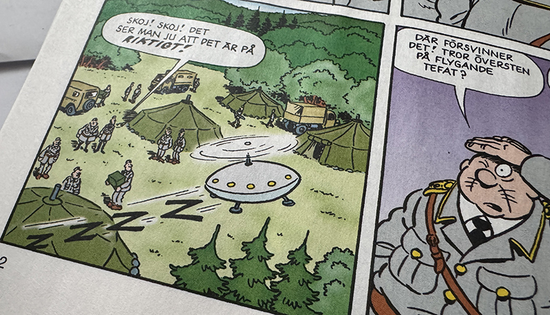 I övrigt var jag igång tidigt för att fixa en privat sak men sedan körde jag och Anneli till Coop för att handla och med ett stopp på Läkarmissionens andrahandsbutik längs vägen. På Coop köpte jag på Pelle Persons inråden det senaste numret av 91:an (21/25) där ett flygande tefat (eller vad det nu är) spelar huvudrollen i serien ”Radiostyrning”.