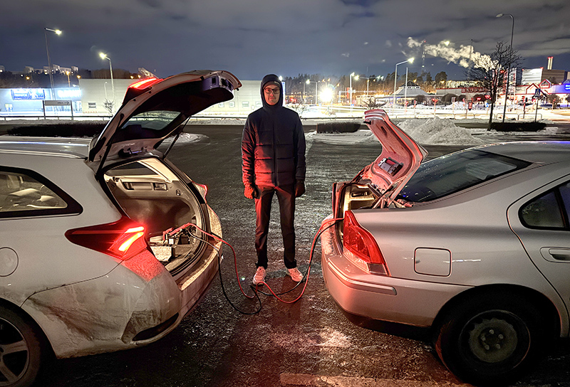 När jag äntligen kände att det var dags att ta kväll ringde Markus. Han hade blivit stående på Ikeas parkering då bilen vägrat starta. Då var klockan 21.30. Jag gav mig av dit och köpte startkablar på vägen (för våra kunde jag för mitt liv inte hitta) men hur vi än försökte ville pojkens bil inte vara med. Ni kan se honom här överst.
