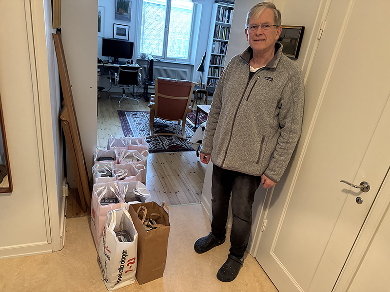 På en gata nära Hantverkargatan på Kungsholmen parkerade jag och tog hissen upp till min tidigare DN-kollega Thomas Sundberg som hört av sig eftersom han hade samlat ihop tio kassar böcker till mig. Mycket bra! Och där fanns en hel del bra böcker som jag ringde och kollade med Röda rummet och Karl-Axel när jag kom hem. Han slog till på en hel kasse.