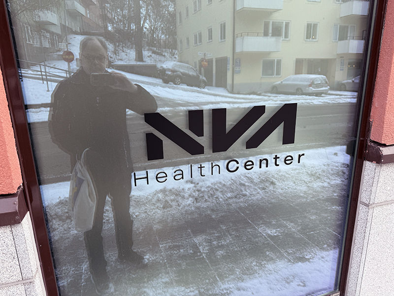 Väl framme parkerade jag på en parallellgata eftersom det var knepigt att köra ned till rätt adress. Även dit hade navigatorn, som nu var rätt inställd, svårt att hitta. Men, jag hittade en trappa som ledde ned till gatan där NVA Health Center låg, gick till dörren –som var låst. Och inte en människa syntes innanför. Mörkt dessutom.