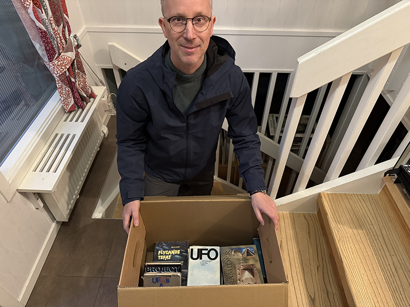 Besökare nummer två var Andreas Ohlsson som kom fem minuter efter det att Stefan gett sig tillbaka mot Mariestad. Andreas hade med sig en halvfull flyttlåda med ufoböcker och i gengäld fick han sex flyttlådor som han själv fick klättra upp på tredjevinden för att hämta. Mitt knä klarar inte att klättra på stegar.