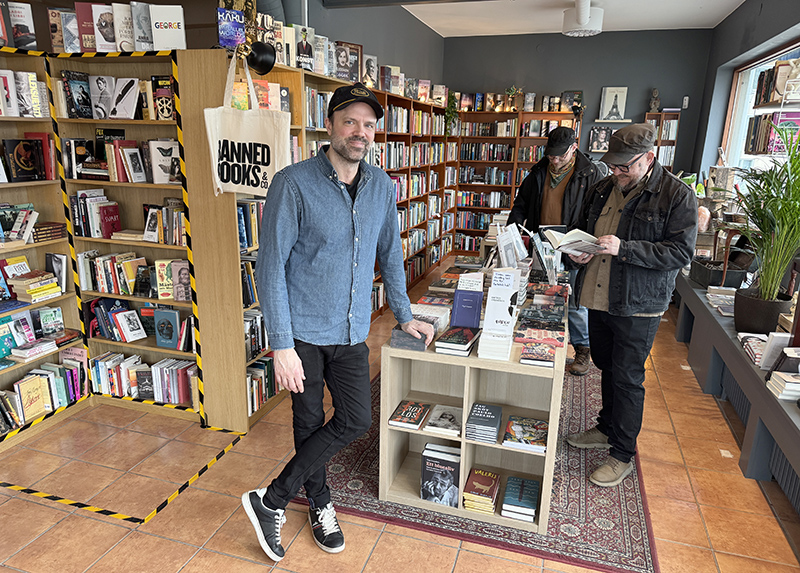 Vi satt där och pratade en stund men fortsatte sedan till Knivsta för att kika in på Banned books & Co, en nyöppnad bokhandel som DN skrev om i helgen. En av ägarna var på plats när vi hängde på låset klockan 11. Daniel Åhlin, själv författare, driver denna underbara pärla till boklåda som säljer böcker som förbjudits i vissa länder men också mycket annat. Och vinyl plus en del cd. Lite serier och så fantasy och lite science fiction.